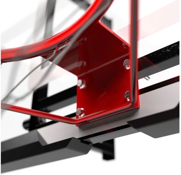 Щит изготовлен из прочного поликарбоната, который отличается высокой устойчивостью к ударам и погодным условиям. Он не мутнеет, не выцветает и сохраняет аккуратный внешний вид даже при активной эксплуатации. Толщина конструкции 3 мм, что обеспечивает надежность и долговечность, а качественная сборка гарантирует устойчивость при бросках и отскоках мяча.
