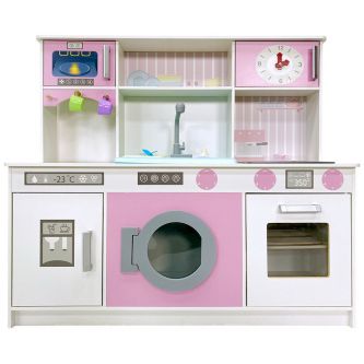 В дизайне кухни предусмотрено максимальное количество функций для интересных игр. Все дверцы с ручками, в том числе микроволновка, холодильник, плита, стиральная машинка - открываются, позволяя ставить посуду и раскладывать продукты.