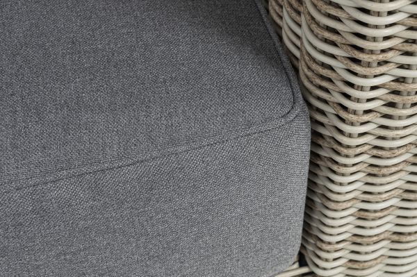 В комплекте с трехместным диваном идут мягкие подушки для комфортного расположения. Чехлы съёмные серого цвета из высококлассного полиэстера с плотностью 300гр/м2. Защитные свойства ткани усиливаются при помощи влагоотталкивающей пропитки.