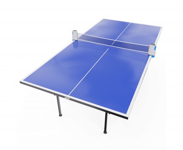 Стол можно сложить наполовину, чтобы использовать в режиме одиночной тренировки — вторая половина служит отражающей поверхностью, позволяя отрабатывать подачи и удары без партнёра.