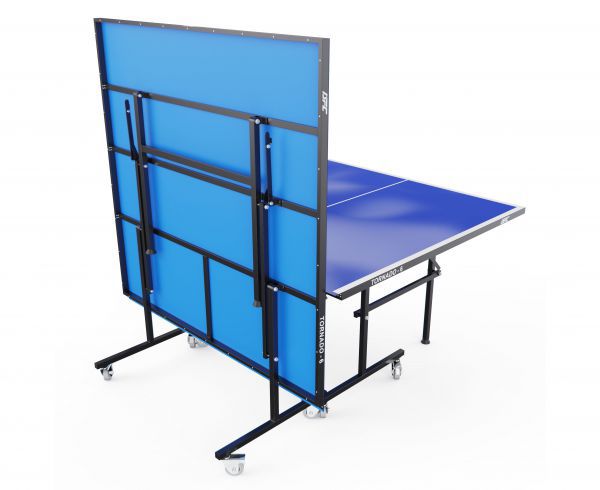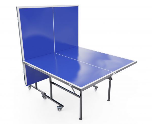 Складная конструкция делает теннисный стол удобным для хранения и транспортировки. В сложенном виде модель отличается компактностью и занимает минимум места, что позволяет удобно хранить её даже в ограниченном пространстве и без труда перемещать с помощью транспортировочных роликов.