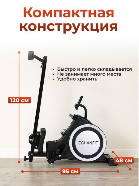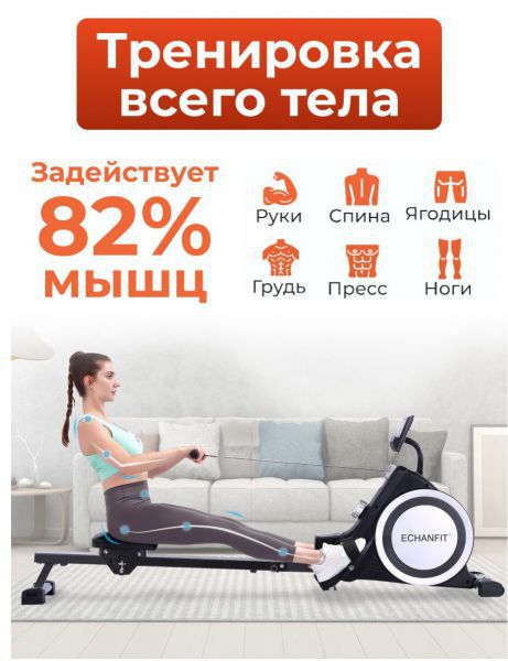 Гребной складной тренажер DFC ECHANFIT CRW4107A-N — это удобный и функциональный тренажёр для домашнего использования с магнитной системой нагрузки. Он сочетает эффективность, комфорт и простоту эксплуатации, помогая поддерживать отличную физическую форму и тренировать всё тело.