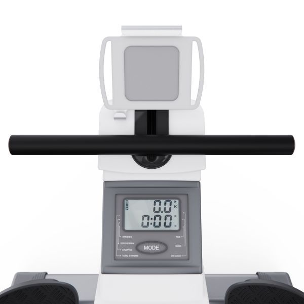 Тренажёр оснащён монохромным LCD-дисплеем, отображающим ключевые показатели тренировки — количество гребков в минуту, калории, общее количество гребков, время, режим сканирования и дистанцию. Дисплей работает от двух батареек типа AA (не входят в комплект). Для расширения функционала предусмотрено подключение по Bluetooth к приложению FITSHOW, что позволяет отслеживать прогресс и делать занятия более увлекательными.