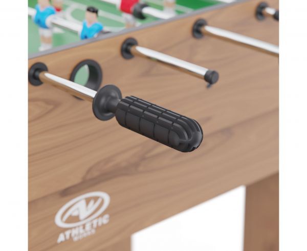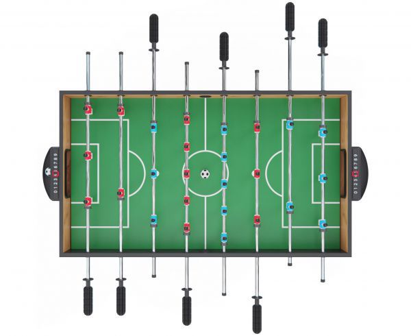 Габариты стола — 124 х 61 х 81 см, высота ножек — 61 см. Стол выполнен из прочных материалов (МДФ и ПВХ), обеспечивающих надежность и устойчивость конструкции. Толщина игрового поля — 3 мм, а бортиков — 12 мм, что гарантирует долговечность и комфорт в игре.