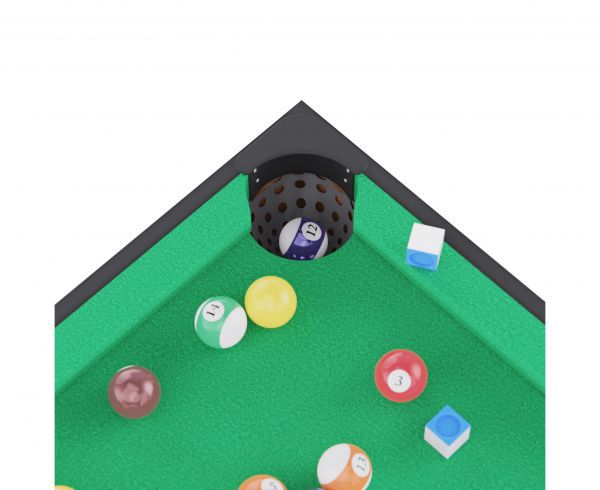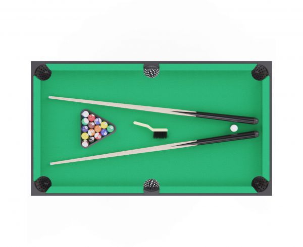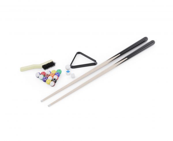 В набор входят: 2 футбольных мячика, 2 теннисные ракетки, 2 мяча для настольного тенниса, комплект бильярдных шаров, треугольник для их выравнивания, 2 кия, щетка для ухода за покрытием и 2 мелка. Всё необходимое для начала игры — уже в комплекте!
