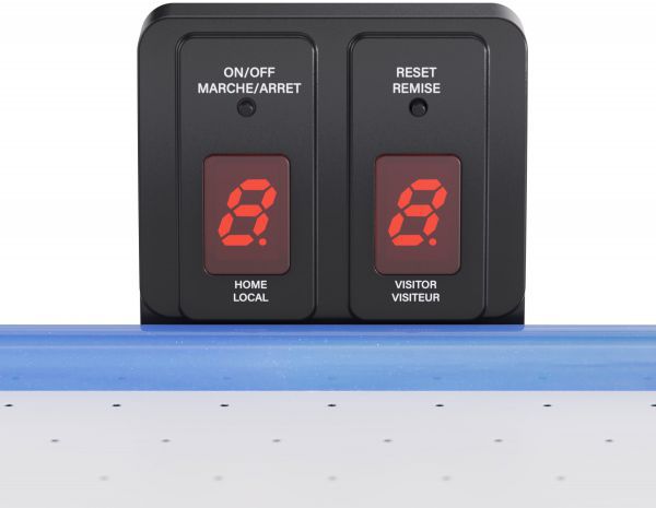 Электронное табло работает от двух батареек типа AAA (в комплект не входят). В набор также входят 2 биты диаметром 65 мм и 2 шайбы диаметром 55 мм — все, что нужно для увлекательной игры сразу после сборки.