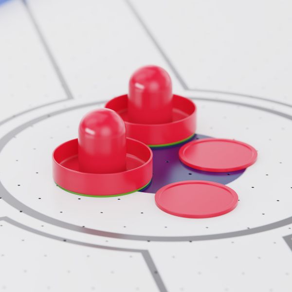 Встроенный вентилятор на 220В создает воздушную подушку, по которой шайба скользит практически без трения — именно так достигается эффект настоящего аэрохоккея. Для удобства игроков стол оснащён электронным и механическим счётчиком очков, что позволяет отслеживать результаты в реальном времени.
