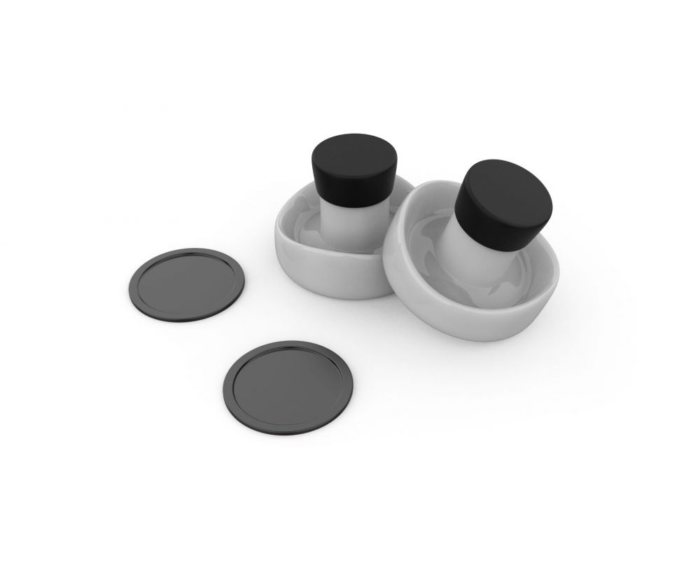 В комплект входят 2 биты и 2 шайбы, электронный счётчик очков и блок питания, работающий от батареек типа АА (не входят в комплект). Ножки стола можно отрегулировать по высоте, если необходимо компенсировать неровность пола. Вентилятор работает от сети 220 вольт.
