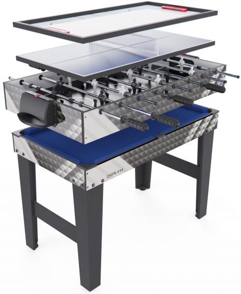 | Размер игрового поля: | Бильярд: 96 х 50 см, Настольный теннис: 96 х 50 см, Хоккей: 93 х 47 см, Футбол: 104 х 58 см |
