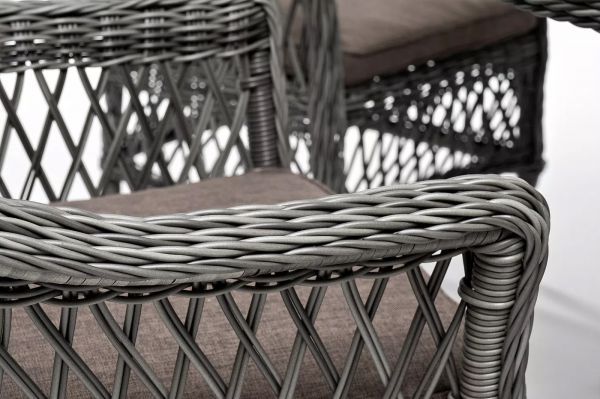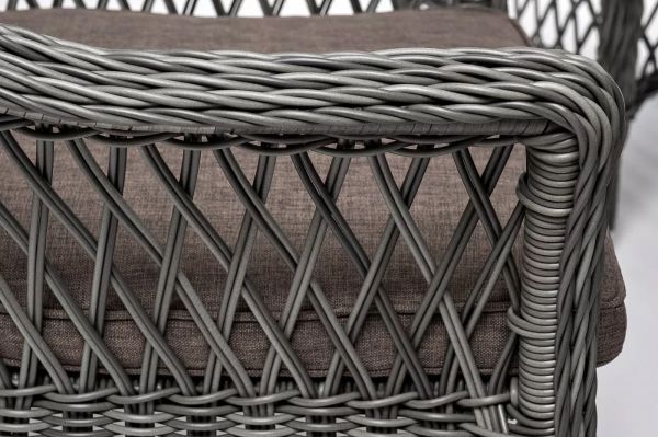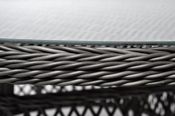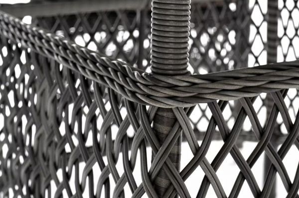 Вся мебель изготовлена из алюминия, поэтому ее очень легко перемещать. Декоративное покрытие выполнено из долговечного искусственного ротанга, устойчивого к перепадам температур и переменам погоды.