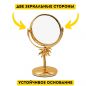 Конструкция имеет компактные габариты и оригинальный дизайн, который привлекает к себе внимание. Подставка, на которой расположены отражающие поверхности, выполнена в виде пальмы. Основание и корпус косметического зеркала изготовлены в золотом цвете, что неповторимо смотрится в любом классическом стиле интерьера.