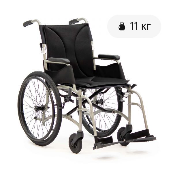 Самая лёгкая механическая Кресло-коляска MET FLY для инвалидов с сиденьем из чёрного полиэстера, алюминиевой рамой, вес коляски всего 11 кг.