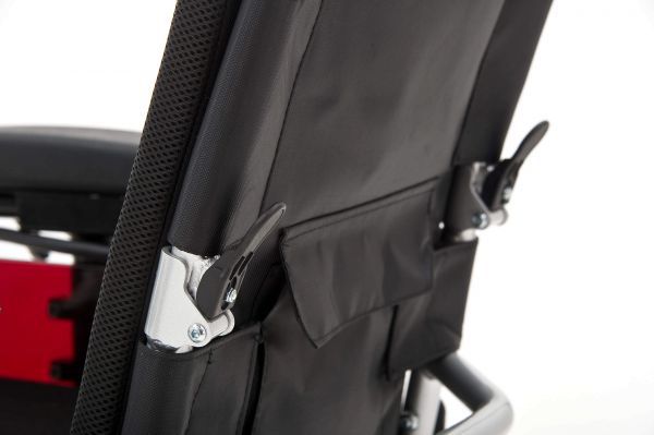 Регулируемые подлокотники длиной 41 см и увеличенной шириной, поддерживают руку по всей длине предплечья. Также, подлокотники раздвигаются по ширине от 43 до 55 см., что позволяет не только пользоваться ROUTE 14 людям с разной комплекцией, но и обеспечить человеку комфортную поездку в зимний период с учетом наличия теплой одежды. Регулируемая спинка принимает 5 вариантов положений и уменьшает нагрузку на позвоночник и поясницу.