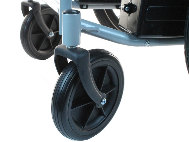Благодаря откидным подлокотникам осуществляется комфортная посадка пользователя. Длина подножек регулируется механическими фиксаторами, ножные опоры оснащены лентой для держания голени. Коляска имеет дополнительную роликовую систему, исключающую опрокидывание устройства. Грузоподъемность изделия составляет 120 кг.
