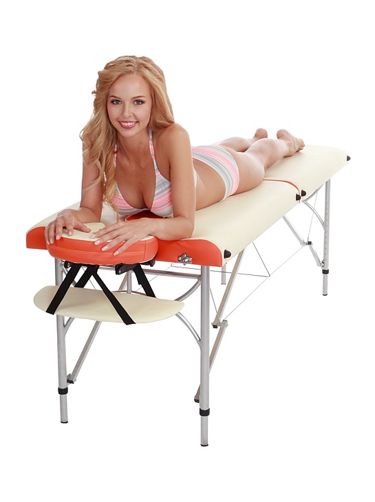 Стол имеет комфортный подголовник с удобным упором для рук и меняющимся углом наклона. В изголовье находится люверс для лица. Складная конструкция и предусмотренная ручка облегчают транспортировку изделия.