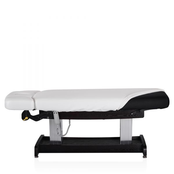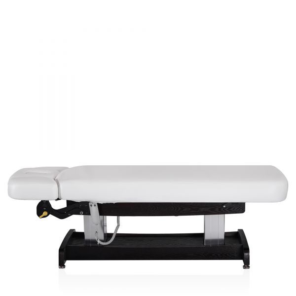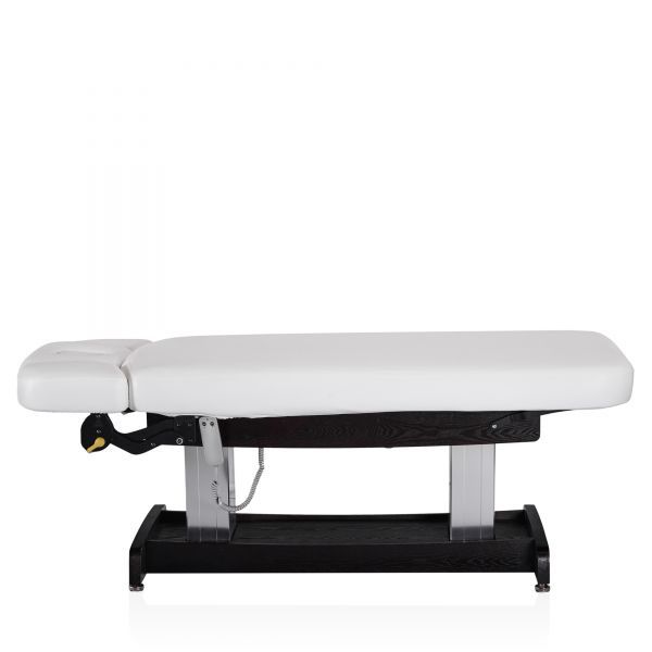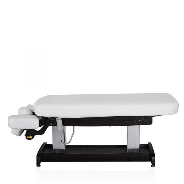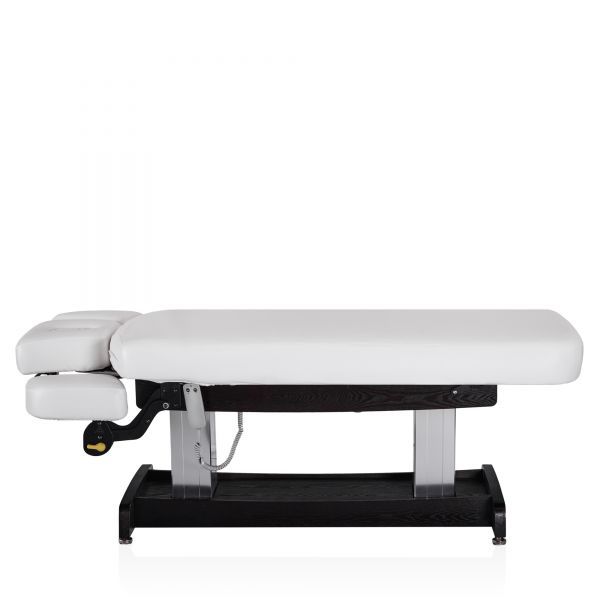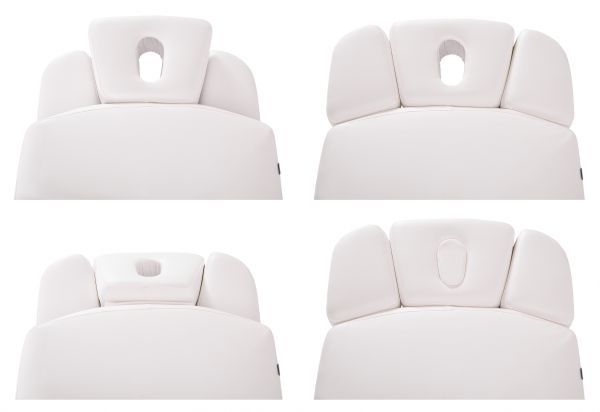 Конструкция стола включает в себя подъёмный механизм, обеспечивающий регулировку высоты для удобства как клиента, так и специалиста. Подголовник стола имеет возможность регулировки по высоте и углу наклона, что позволяет адаптировать его под индивидуальные потребности и предпочтения клиента, обеспечивая оптимальную поддержку и комфорт во время процедур.
