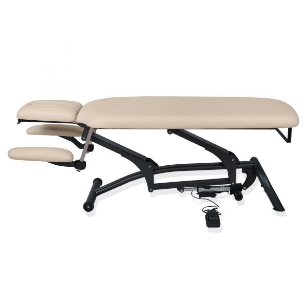 Стол оснащен удобным и прочным каркасом из высококачественной стали, что обеспечивает стабильность и надежность во время массажа. Высококачественный материал обивки, изготовленный из экокожи, обладает прочностью и долговечностью, легко чистится и обеспечивает приятный тактильный контакт с клиентом.