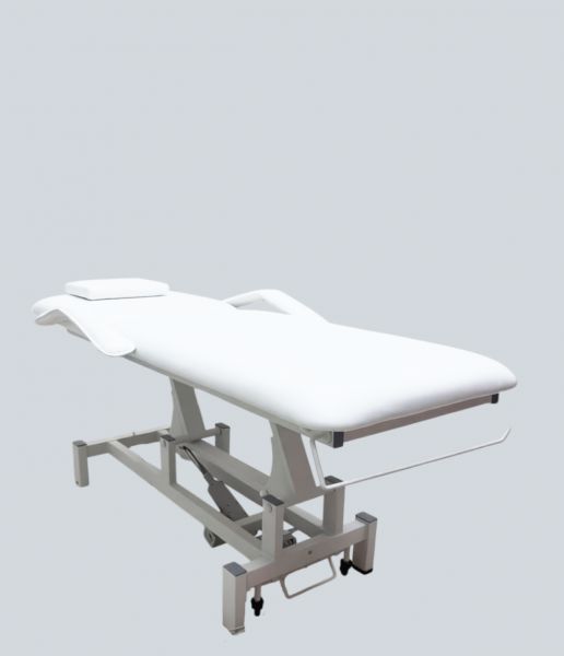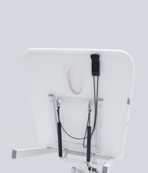 Высота стола регулируется с помощью электропривода, а подвижная секция регулируется пневматическим способом.
