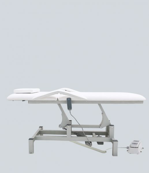 Высота стола регулируется с помощью электропривода, а подвижная секция регулируется пневматическим способом.