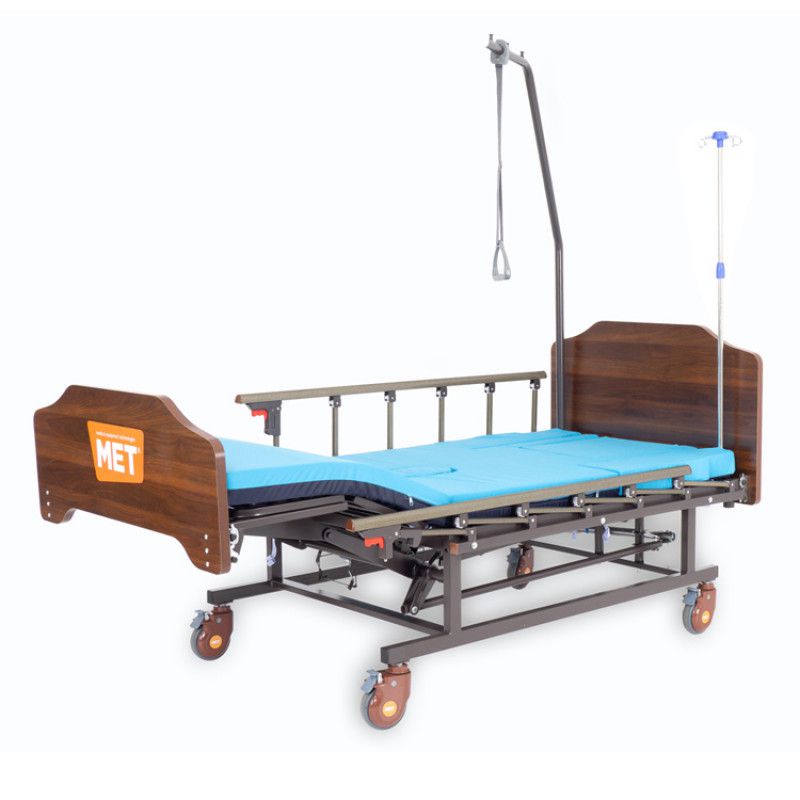Медицинская кровать с функцией переворачивания, спинками из ЛДСП приятной "деревянной" текстуры, объединяющая в себе функции кардио-кресла и переворачивания больного с санитарным оснащением.