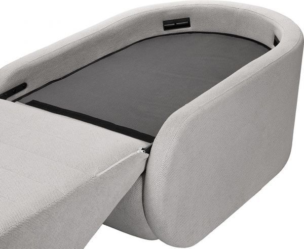 Уникальный механизм раскладывания позволяет трансформировать кресло из вертикального положения в горизонтальное.