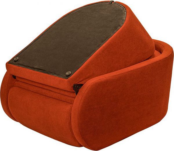 Уникальный механизм раскладывания позволяет трансформировать кресло из вертикального положения в горизонтальное.