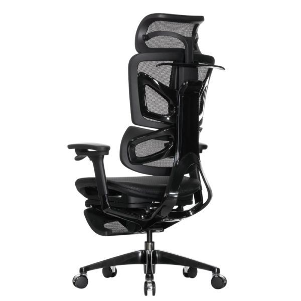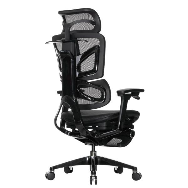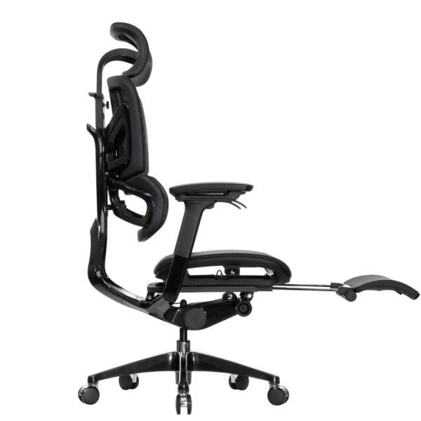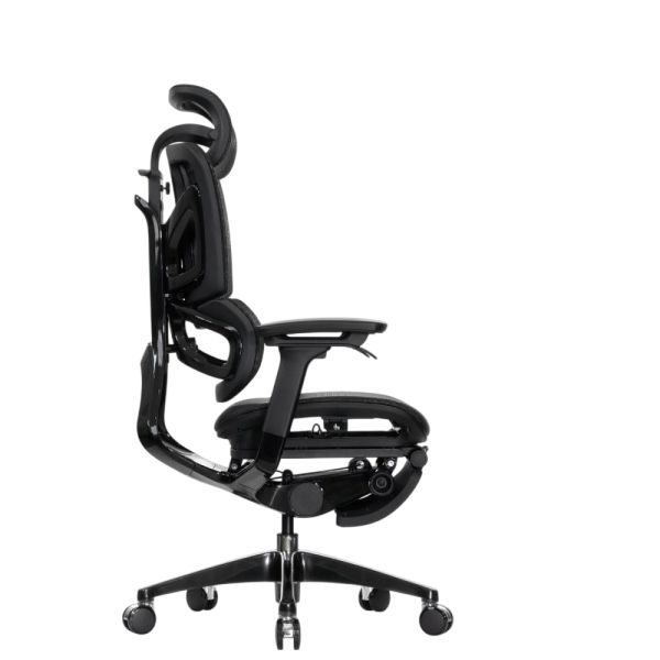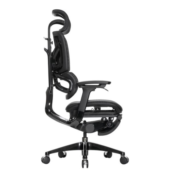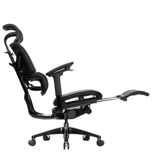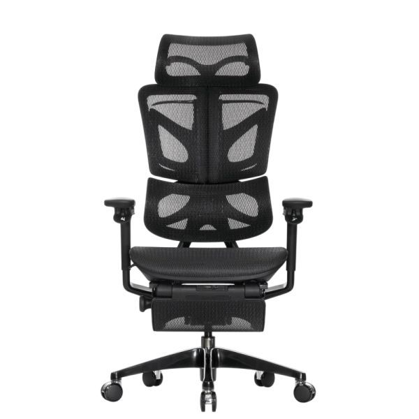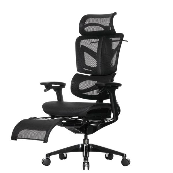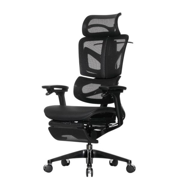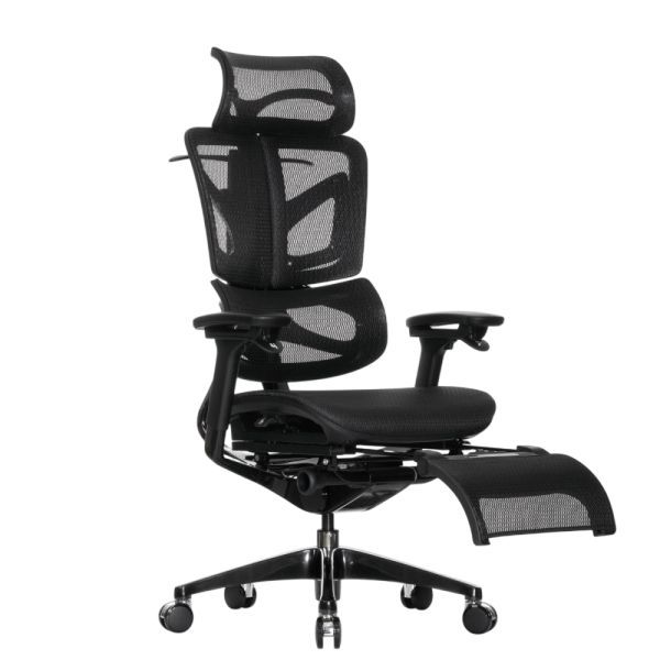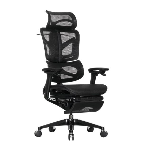 Falto — Кресло с подножкой BLACK DIAMOND тихие вставки, управление на подлокотниках, сетка, черный