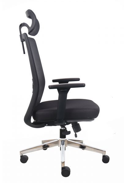 Офисное кресло Right — эргономичная и современная модель, идеально подходящая для повседневной офисной работы. Лаконичный дизайн в черном цвете органично впишется в любой рабочий интерьер. Сиденье выполнено из износостойкой ткани с наполнением из Memory foam, что обеспечивает комфорт даже при длительном использовании. Спинка из сетки поддерживает оптимальную вентиляцию, а регулируемый подголовник помогает снизить нагрузку на шею. 2D подлокотники позволяют настроить высоту и угол для удобства рук. Прочная хромированная крестовина обеспечивает устойчивость конструкции. Благодаря синхромеханизму со слайдером кресло легко настраивается под разный рост и позволяет выбирать удобный угол наклона спинки с возможностью фиксации.