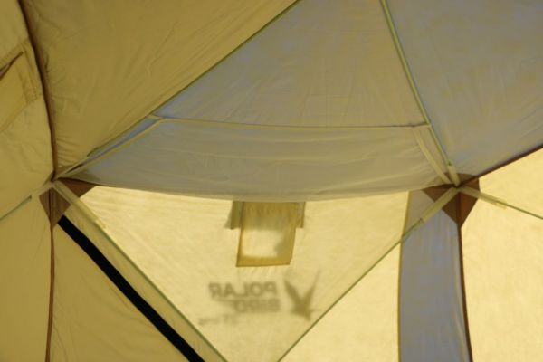 Стены палатки изготовлены из двух слоев водоотталкивающей ткани Oxford 240D с полиуретановым покрытием, между которыми находится толстый слой утеплителя, синтепона плотностью 150г/м2. Светлые ткани, используемые на внутренней части стен, обеспечивают отличную видимость внутри палатки, даже без открытия шторок на окнах. Каркас изготовлен из надежных пластиковых хабов и стеклокомпозитных материалов собственного производства, обладающих повышенной прочностью и жесткостью, благодаря чему палатке не страшен самый сильный ветер.