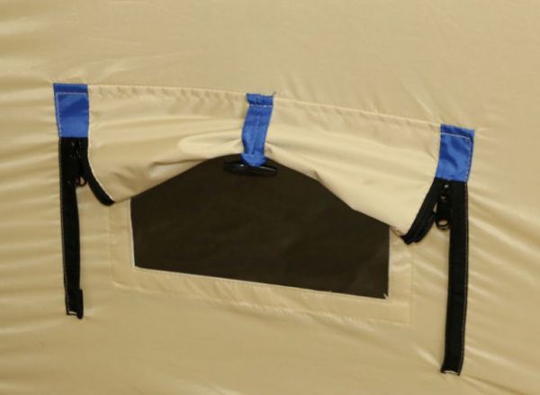 | Вентиляционные окна на стене и двери палатки для проветривания во время ночлега или дождя. | |