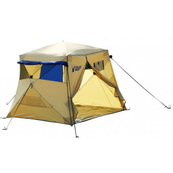 Обновленная летняя универсальная палатка-шатер Polar Bird 4SK, размером 2,3х2,3 метра. В серии палаток-шатров SK (конструктор), на входе установлена молния, что позволяет создавать различные варианты лагеря, используя дополнительный тент-навес и соединять им между собой палатки.