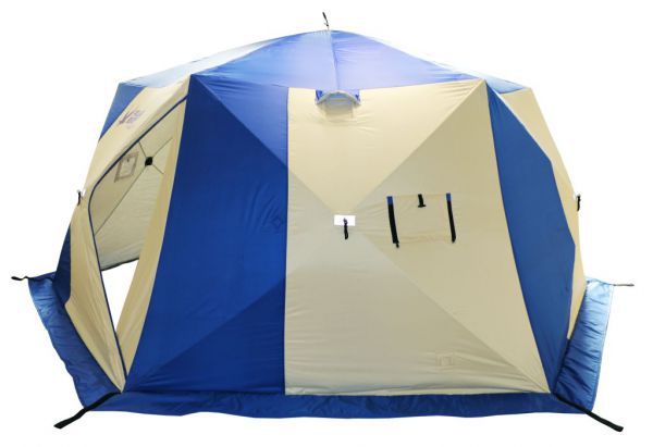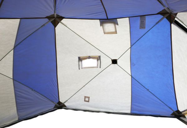 Зимняя палатка Polar Bird Family T FEST одна из самых больших серии палаток Polar Bird. Размер палатки по полу 445 х 385 см. По центру высота палатки 205 см, поэтому в ней можно ходить в полный рост. Палатка оснащена вентиляционными окнами и клапанами приточной вентиляции. При этом все окна имеют козырек для предотвращения попадания снега внутрь.
