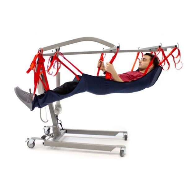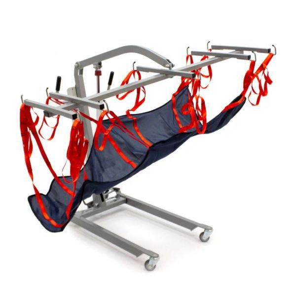 В комплекте с подъемником идет гамак. Обращаем ваше внимание, что для безопасной транспортировки больного, таз пациента должен быть размещен между двумя центральными швами гамака.