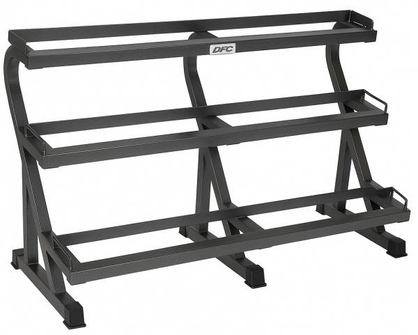 Трёхъярусная конструкция стойки позволяет удобно разместить гантели различных размеров и весов. Оптимальное расстояние между полками обеспечивает лёгкий доступ к каждой паре гантелей, а сама стойка экономит пространство, сохраняя порядок в домашнем спортзале.