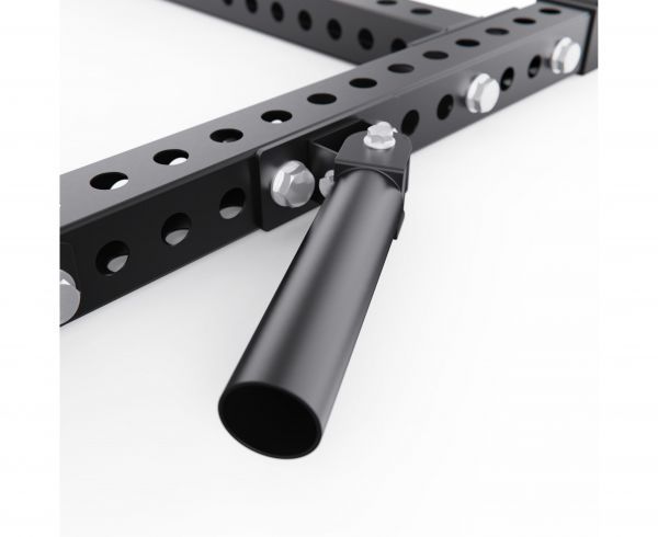 Максимальная нагрузка на узел для подвешивания дисков составляет 150 кг. Для надежной фиксации весов предусмотрен пружинный зажим, повышающий безопасность и удобство во время тренировок.