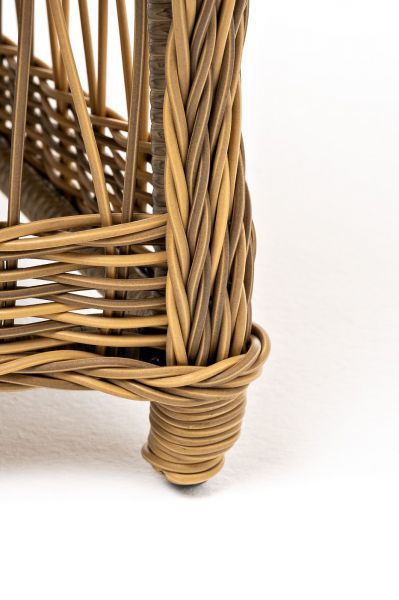 Задекорирован ручной круглой оплеткой, которая сделана из искусственного ротанга.