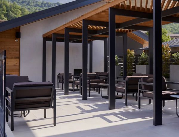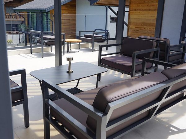 В комплекте на сидениях и спинке предусмотрены подушки контрастного темно-серого оттенка со съёмными чехлами. Строгое лаконичное кресло подходит для использования на открытом воздухе и в помещении, в том числе и в зоне повышенной влажности.