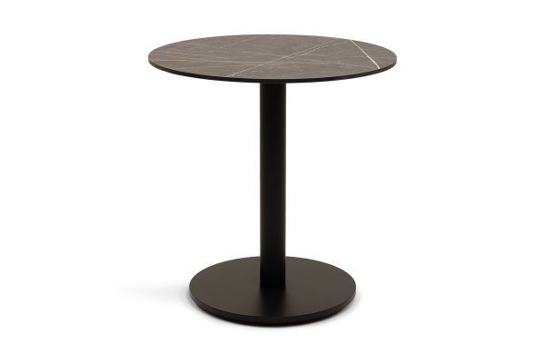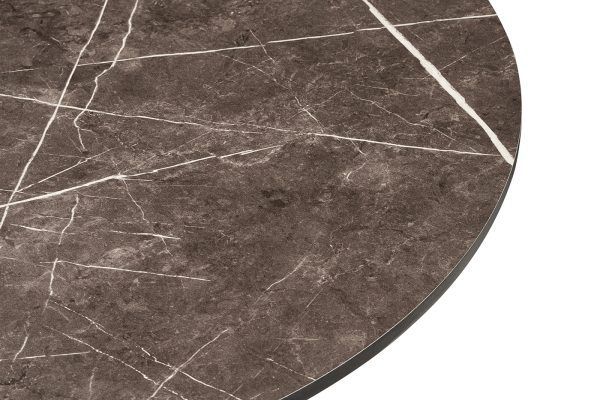 Интерьерный круглый стол «Каффе» со столешницей из HPL в цвете «серый мрамор».