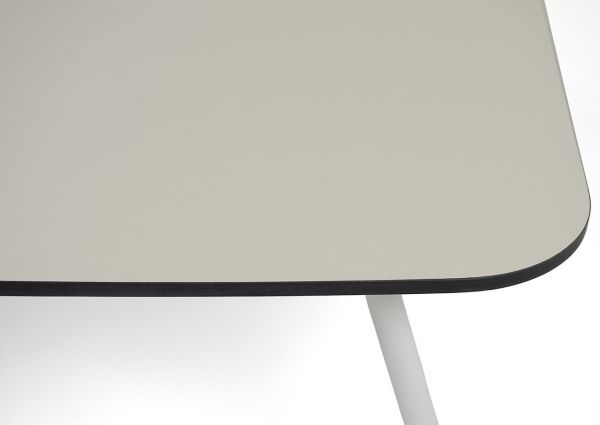 Столешница изготовлена из прочного и устойчивого к механическим воздействиям компакт-пластика HPL в цвете "крем".