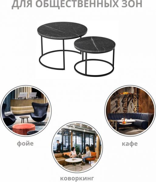 BRADEX HOME — Набор кофейных столиков Tango серый мрамор с чёрными ножками