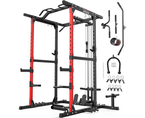 Силовая рама многофункциональная D029 — компактное и удобное решение для домашних тренировок, позволяющее выполнять широкий спектр силовых упражнений, включая подтягивания, отжимания на брусьях, тягу верхнего и нижнего блока.