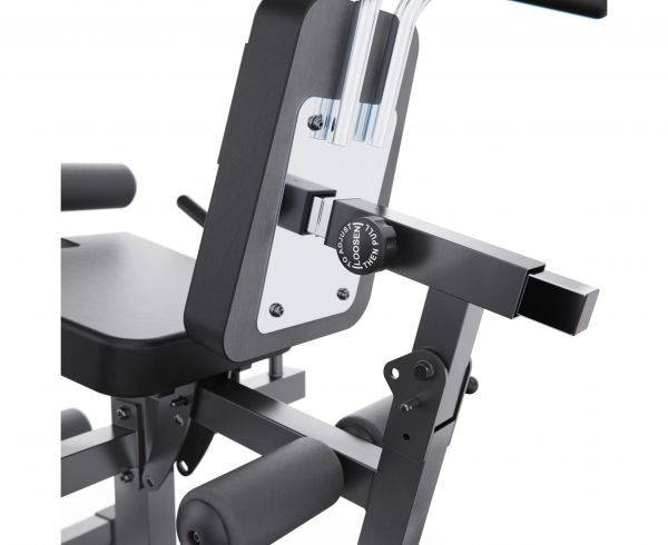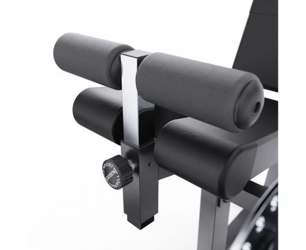 Индивидуальная настройка тренажера обеспечивает максимальный комфорт и эффективность. Большой диск для регулировки угла наклона руки и ноги имеет 24 уровня, а меньший диск для регулировки голеностопного ролика - 18 уровней. Регулируемые валики (6 уровней), спинка с регулировкой по длине и углу наклона, настраиваемое сиденье позволяют адаптировать тренажер под любые параметры пользователя. Это особенно важно для безопасного выполнения упражнений в домашних условиях.