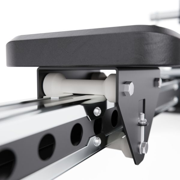Тренажёр рассчитан на пользователей весом до 250 кг, что делает его универсальным решением для спортсменов разного уровня подготовки. Прочная стальная рама с профилем 75 х 75 х 3 мм обеспечивает высокую устойчивость и долговечность конструкции. Слайд длиной 104,5 см обеспечивает естественную амплитуду движений и комфорт при каждом гребке.