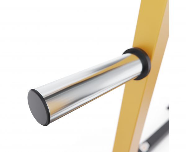 Каркас изготовлен из прочной стали с профилем 70 х 50 х 2 мм, что гарантирует устойчивость и долговечность конструкции. Машина оснащена встроенным грифом длиной 180 см с посадочным диаметром 50 мм и максимальной нагрузкой до 300 кг. Для хранения дисков предусмотрено 6 посадочных мест диаметром 50 мм, каждое из которых выдерживает нагрузку до 150 кг.