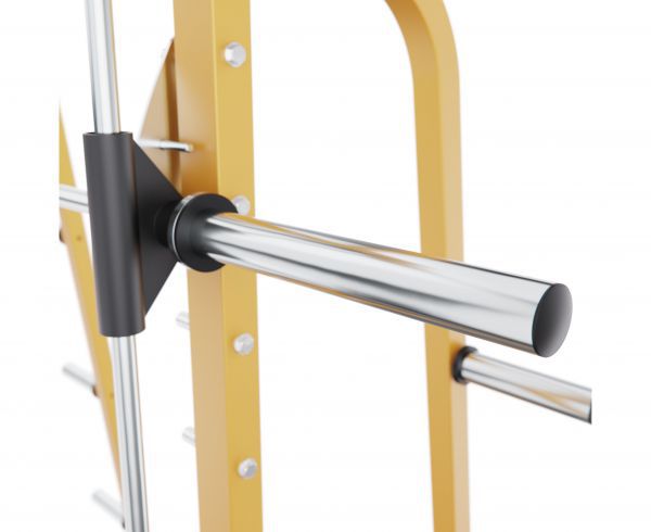 Тренажер имеет 9 уровней регулировки по высоте, что позволяет гибко настраивать рабочее положение под разные упражнения и рост спортсмена. Для дополнительных тренировок предусмотрен турник длиной 88 см с максимальной нагрузкой до 200 кг.