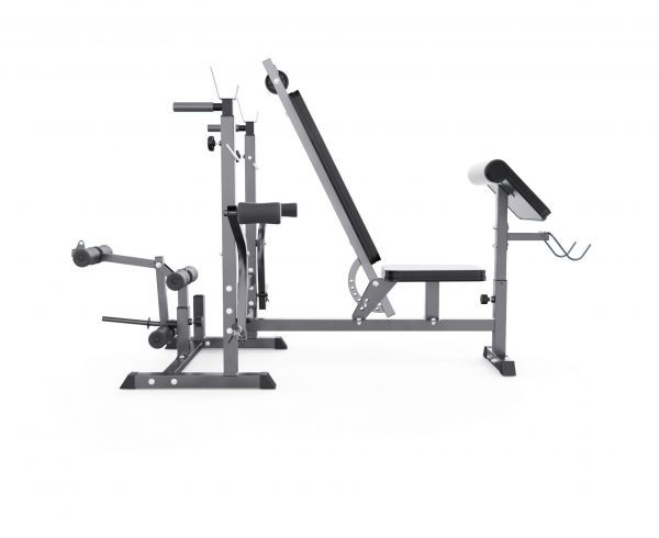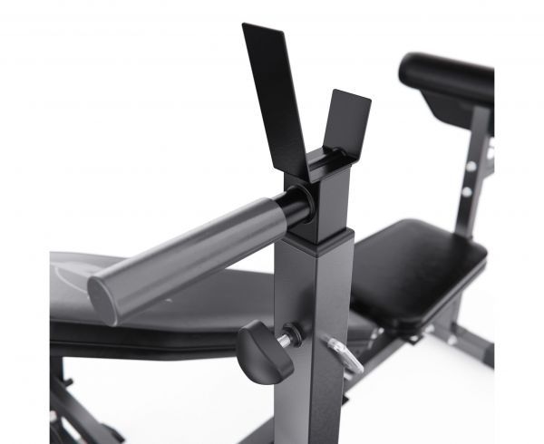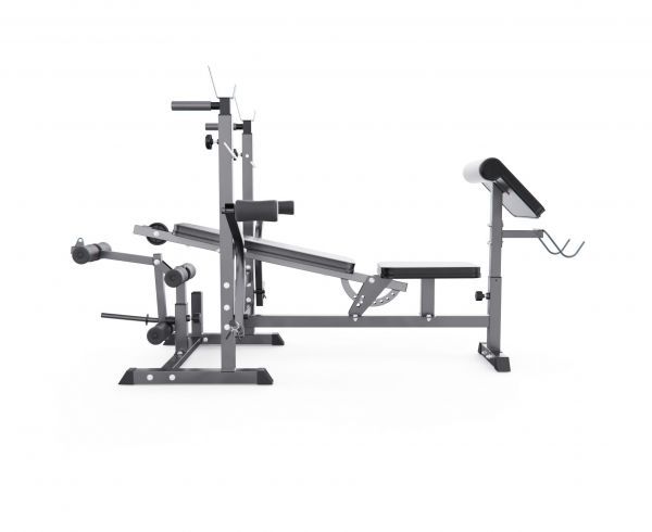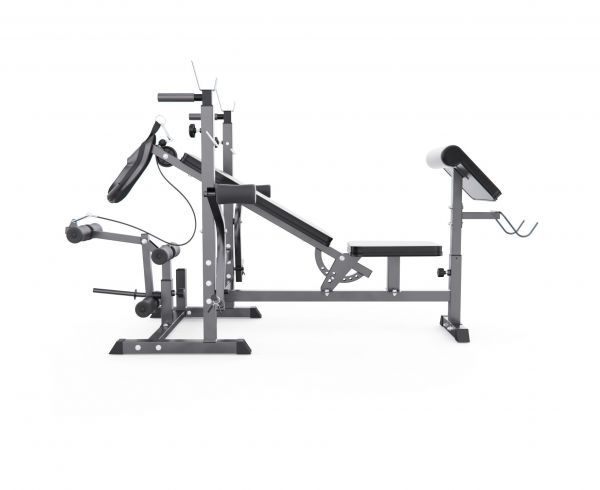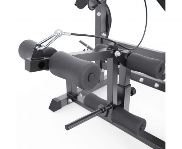 Скамья для жима включает в себя ручные рычаги-бабочки для проработки грудных мышц, кабель для жима на трицепс, поручни для отжиманий на брусьях. Всё это делает тренировки более функциональными и вариативными, не выходя из дома.
