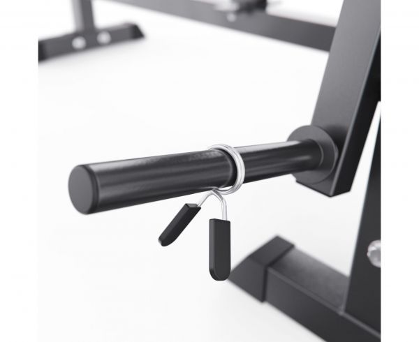 Максимальная нагрузка на скамью составляет 280 кг, включая 180 кг на сиденье, 60 кг на валики и до 40 кг на каждый рычаг для рук-бабочек. Это позволяет безопасно тренироваться с большими весами. Посадочный диаметр для дисков — 25 мм, длина посадочного места — 18 см. В комплект входят 2 пружинных фиксатора.