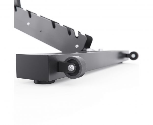 Скамья складная, легко собирается и занимает минимум места, а удобная ручка и транспортировочные ролики помогают быстро переносить скамью, что делает ее идеальной для домашних условий.