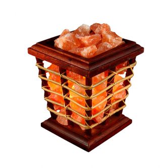 Каркасом для прибора и подставкой выступает массив ценных пород дерева, поэтому солевая лампа выглядит оригинально и эффектно. Работает она от стандартной электрической сети и дарит приятный ненавязчивый свет, поэтому может использоваться в качестве ночника.