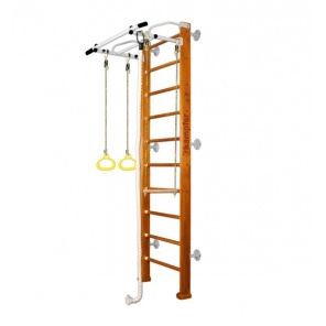 Предусмотрена стандартная комплектация, которая дополнена боксерским мешком – отличное решение для детей, которые мечтают стать настоящими боксерами! Также предусмотрены гимнастические кольца, турник с большим выносом от стены, канат и трапеция – все необходимое для плодотворных занятий спортом.